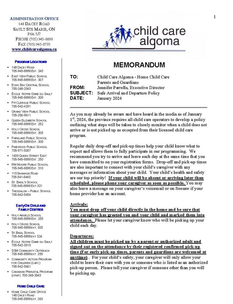 Safe Arrival and Dismissal Policy Memo
